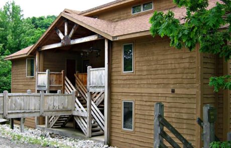 Perfect for families with children, our Log Homes bring back childhood memories of forts, clubhouses and Lincoln Logs™. A stay in one of our Back Forty Log Homes places you in a family-oriented “Old West” town, with all the comforts and amenities of present-day Michigan. Enjoy breakfast early in them morning and then head over to the Back Forty Barn where you can saddle up for a horseback trail ride; or hop on the shuttle bus to the Thoroughbred Golf Course and Gold Rush Indoor Waterpark.