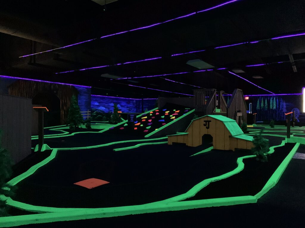 Mystical Forest Indoor Glow Mini-Golf is 18-holes of fun and challenging holes. Vibrant murals and black lights will light up your game. The course is conveniently located above the waterpark, next to the Wooden Nickel Arcade, Rustlers Roost restaurant and bar.